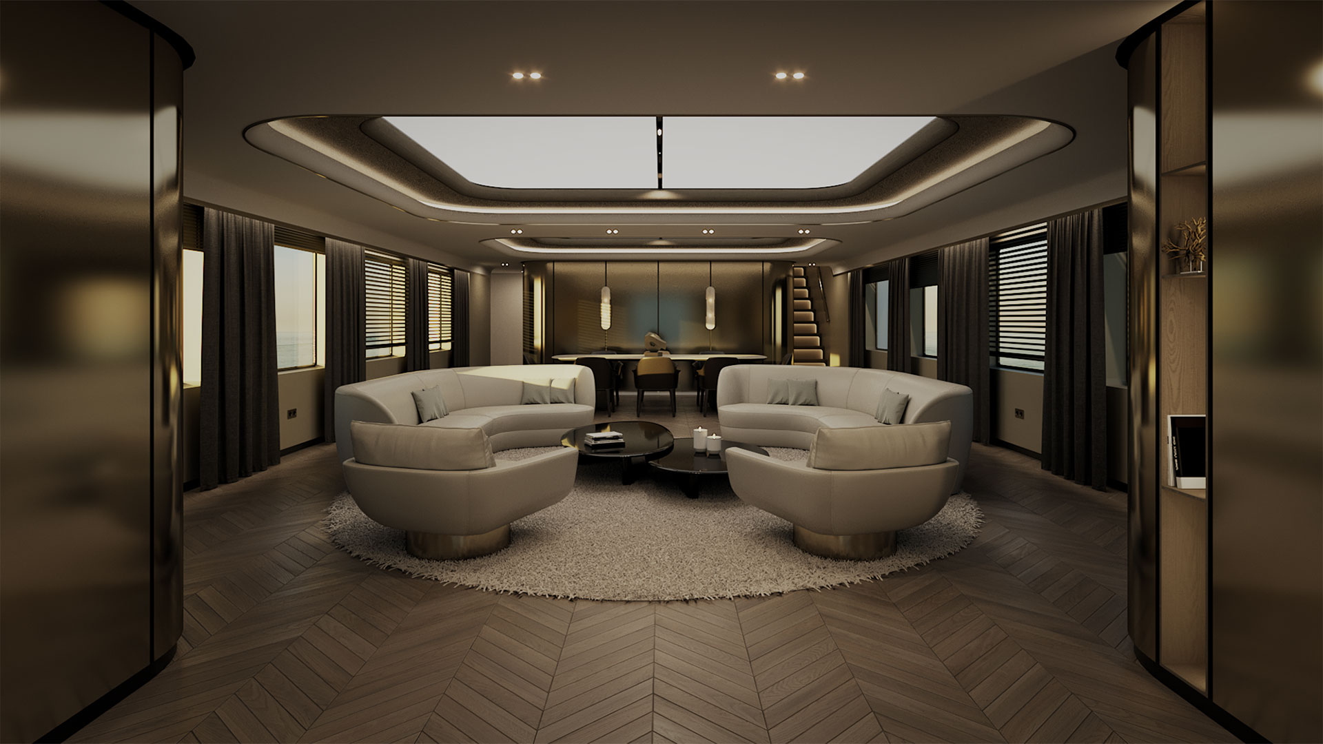 This project explores the design of a 164-foot luxury yacht, developed across three distinct levels and defined by a dynamic yet restrained architectural language. The overall form is shaped by clean, simple lines and a refined aerodynamic profile, avoiding complex geometries in favor of timeless elegance and clarity of design.